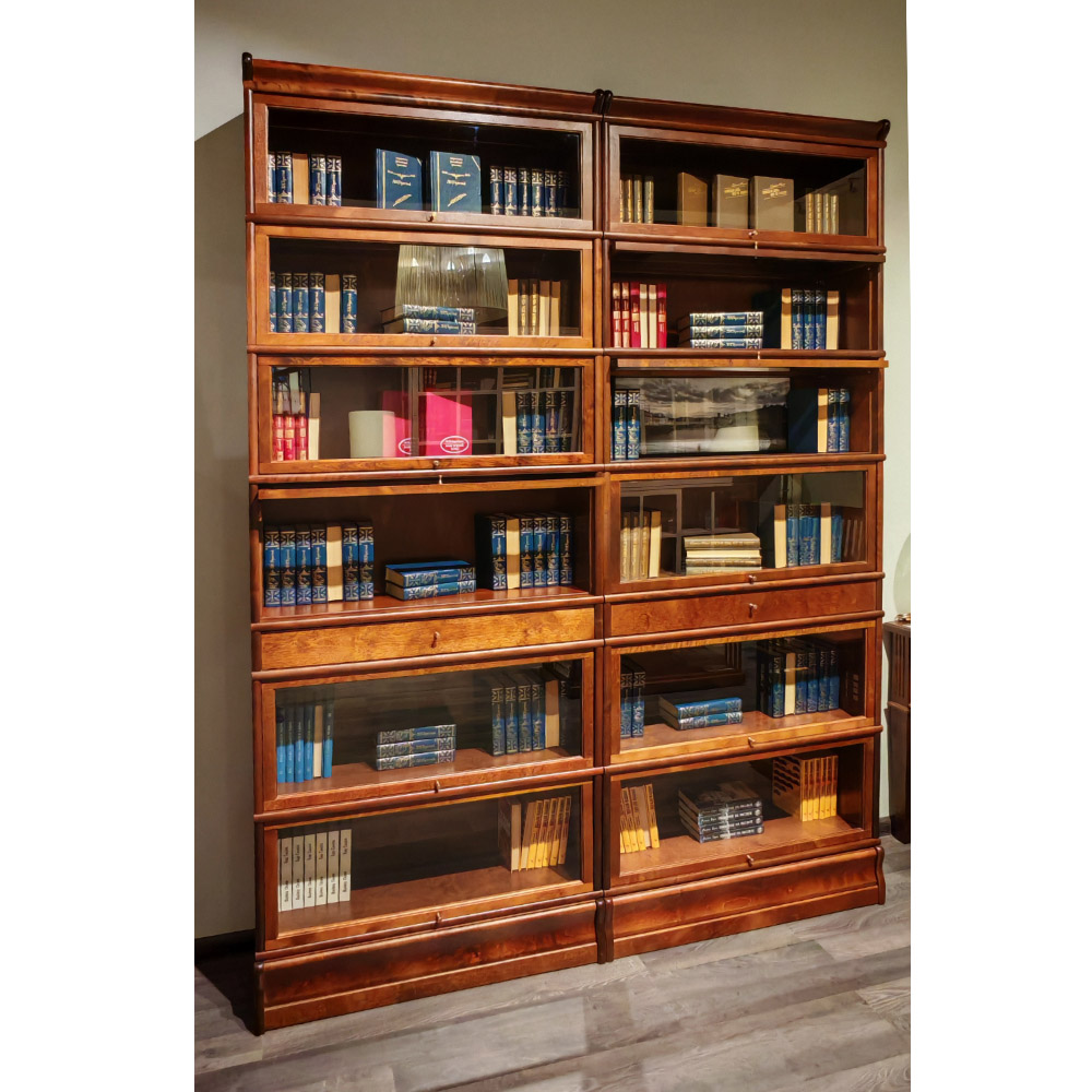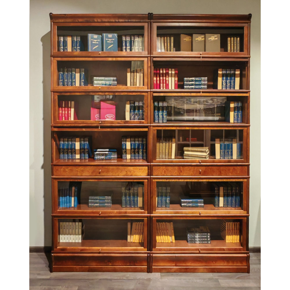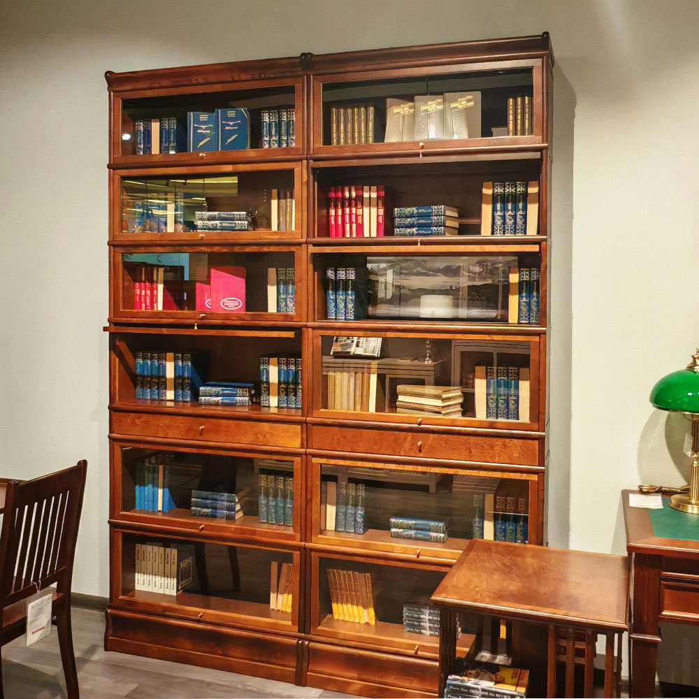 Книжный шкаф Bjorkkvist в темном цвете со стеклянными фасадами.