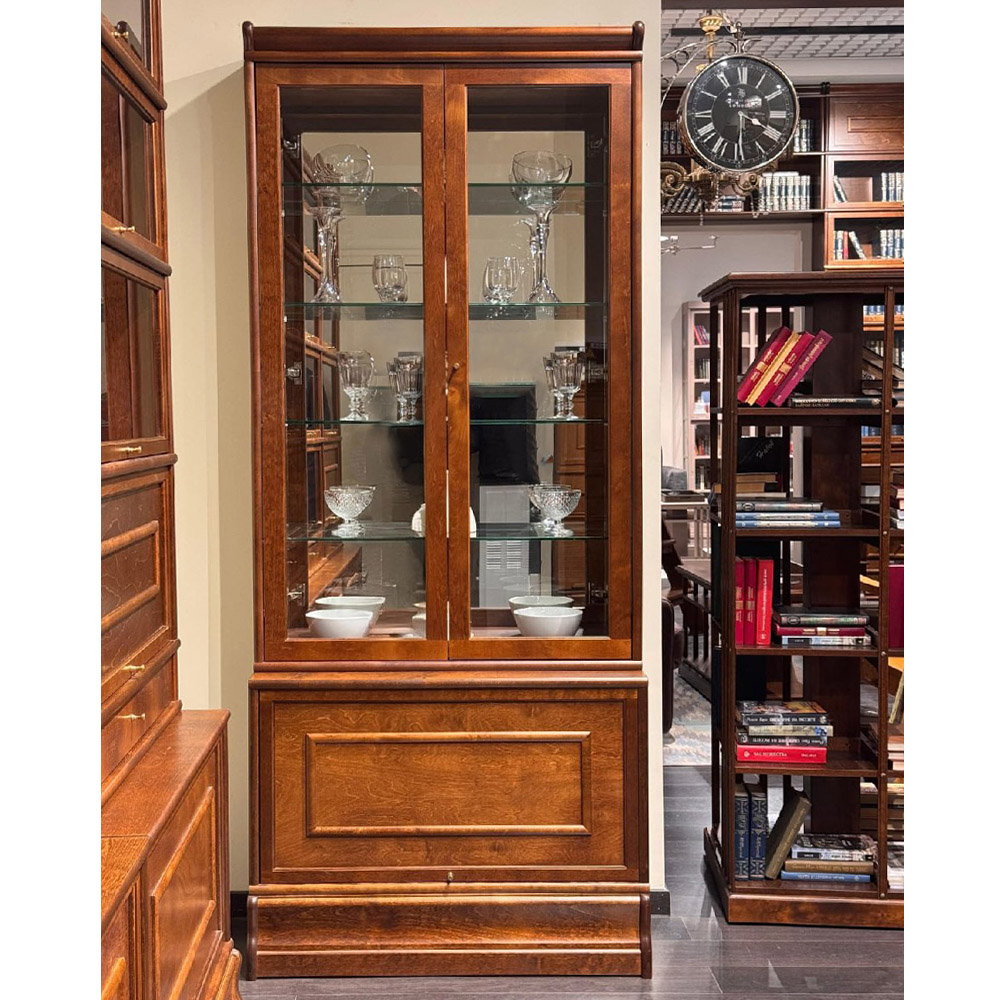 Шкаф-витрина Bjorkkvist в темном цвете со стеклянными полками и зеркальной внутренней стенкой.