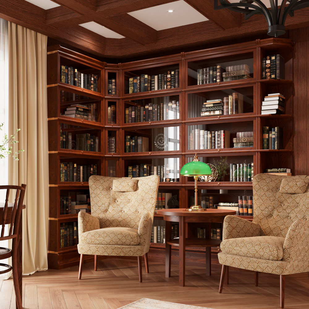Наборный шкаф для книг из массива натурального дерева идеально подойдёт для использования в кабинете, гостиной или домашней библиотеке. Универсальный дизайн позволяет использовать его в интерьерах различных стилей, от классического до современного, делая его отличным выбором для любого помещения, где нужна стильная и практичная мебель для библиотеки.